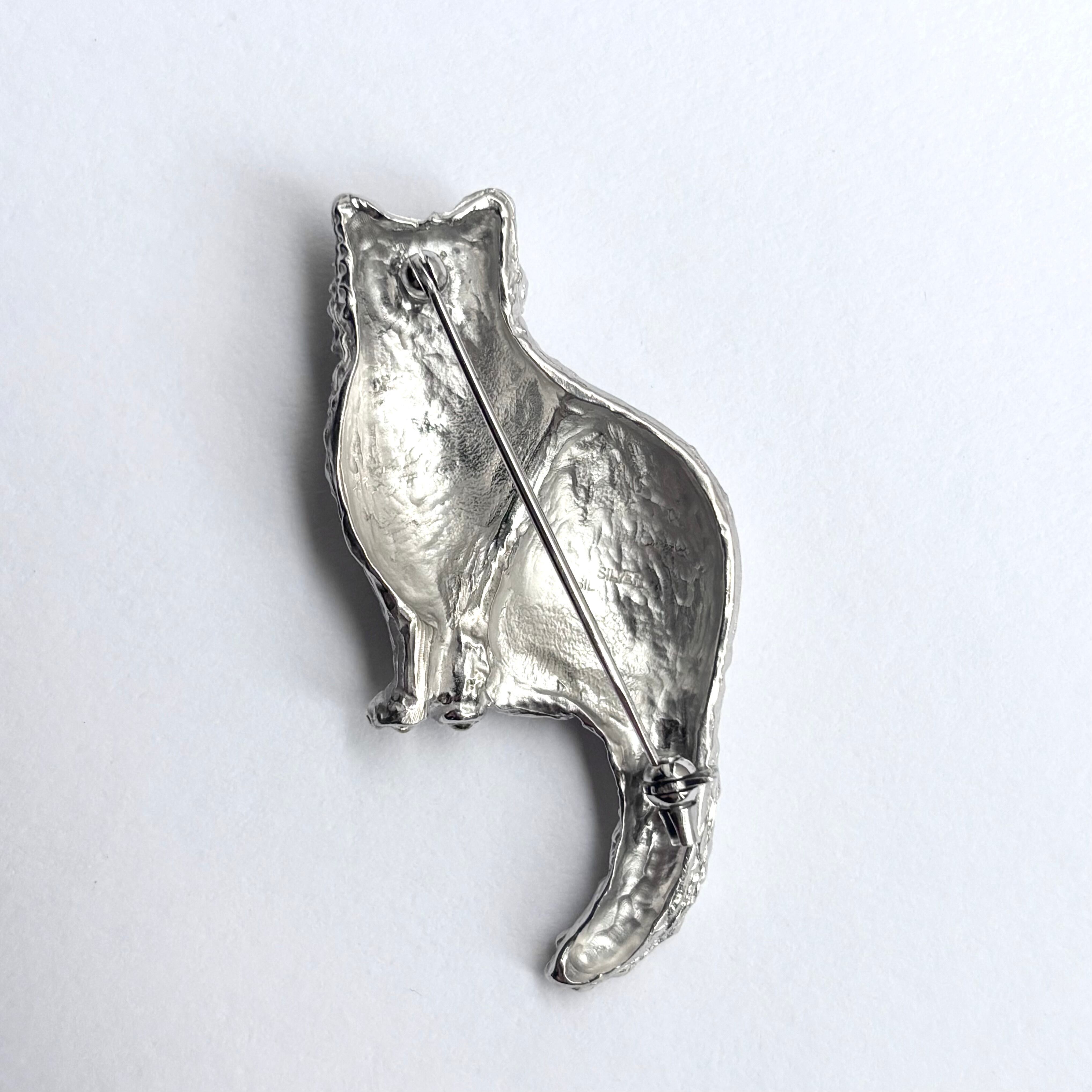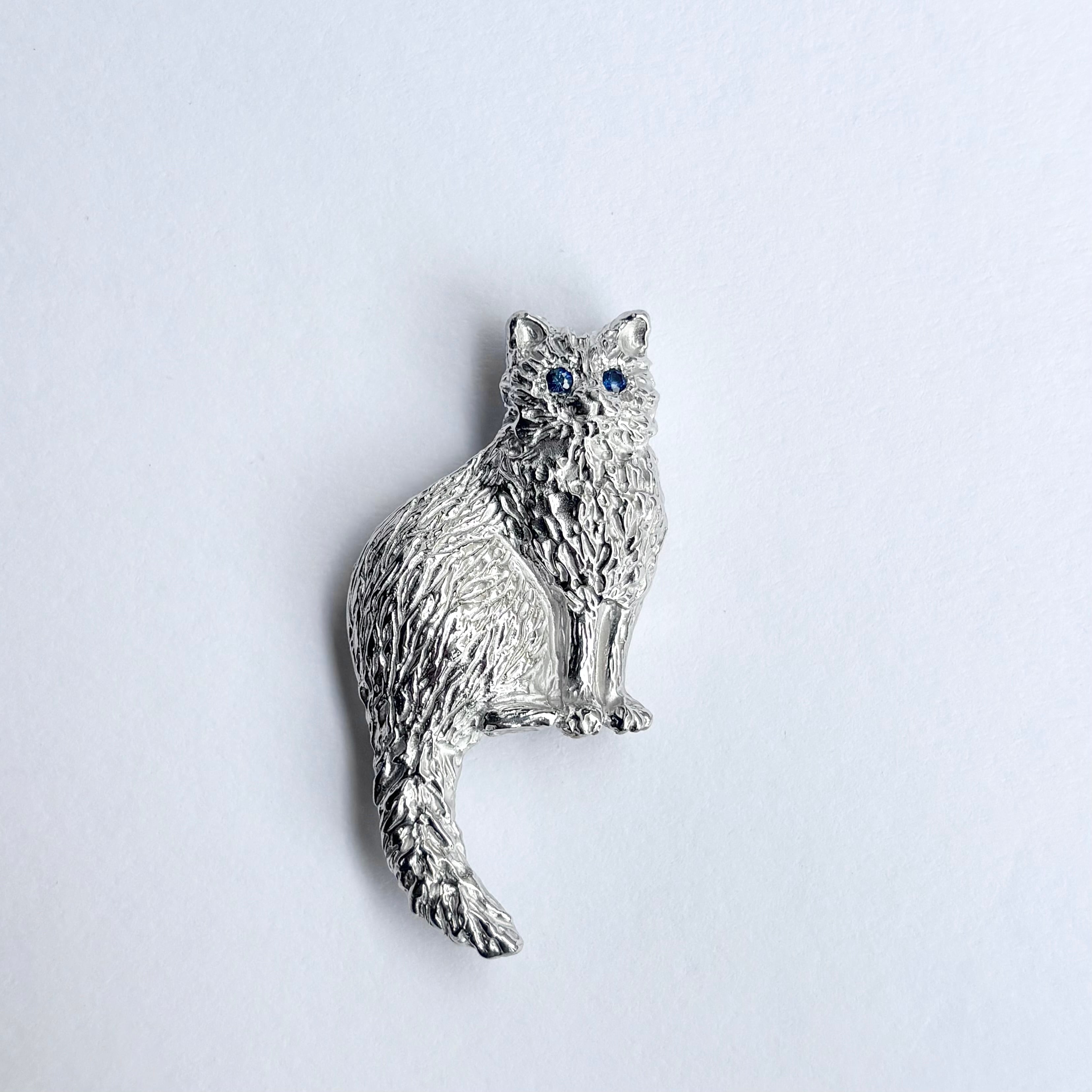 長毛種の猫を象ったシルバーブローチです。